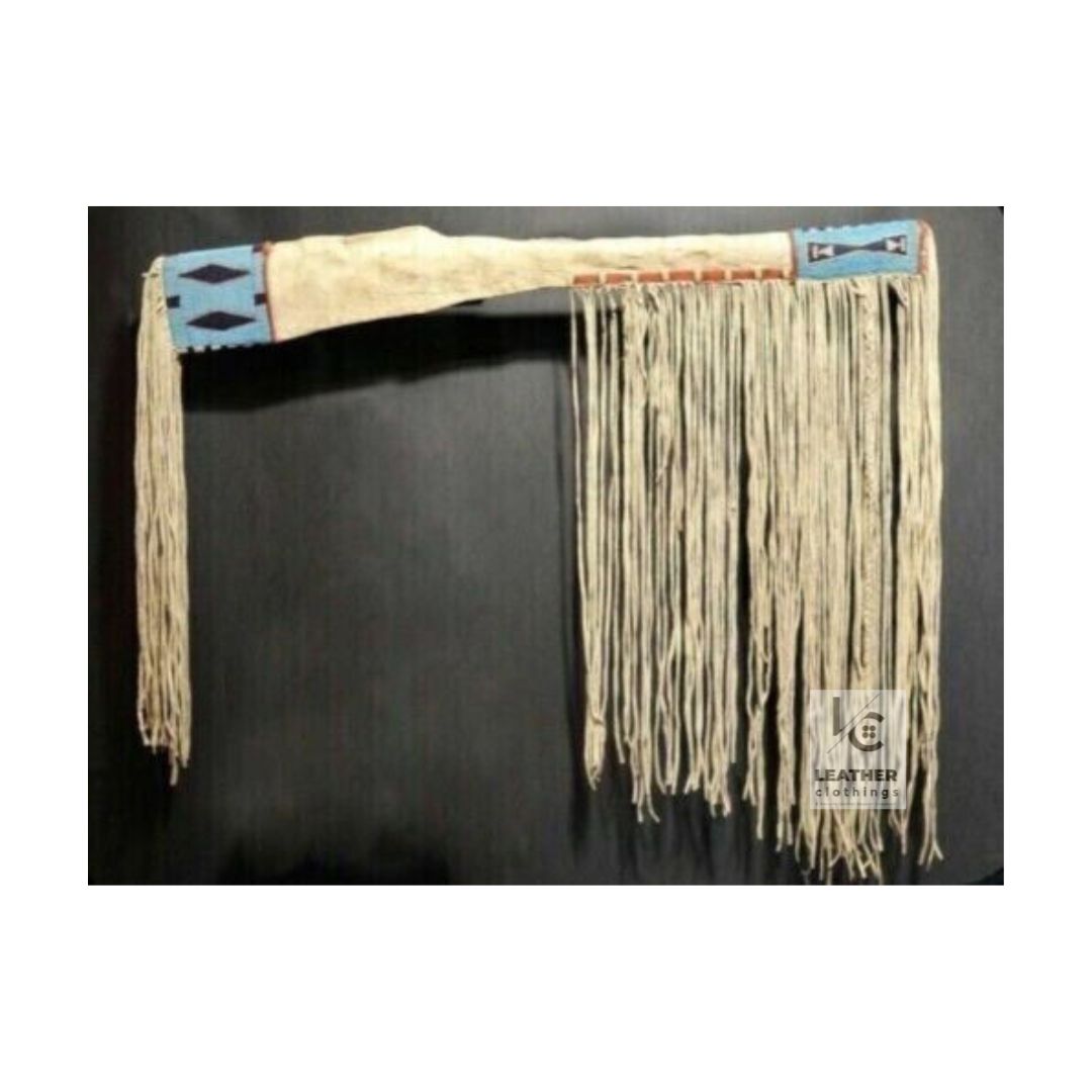 Looking to add to your collection? Check out our Beaded Plains-Style Fringed Suede Cover. This scabbard features intricate beadwork, vibrant colors, and traditional patterns, celebrating Native American culture. Not only does it look stunning, but it also provides durable protection. Embrace tradition and style on your outdoor adventures with this elegant and long-lasting piece.