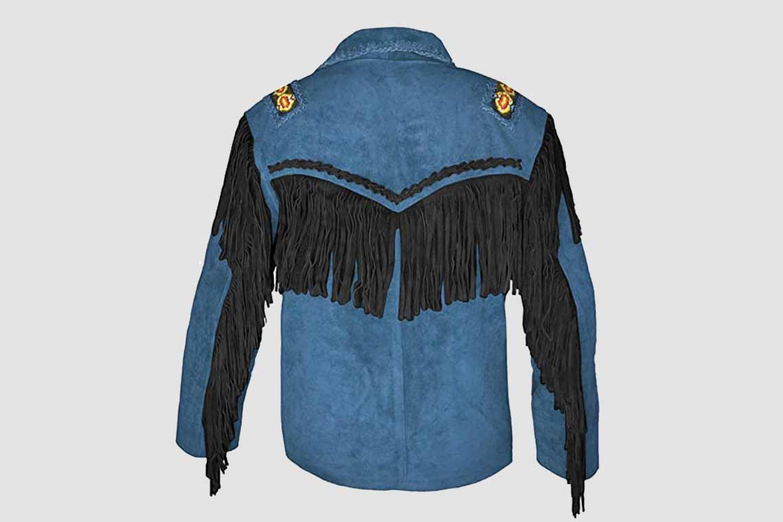 Blue Cowboy Jacket With Beads And Fringes