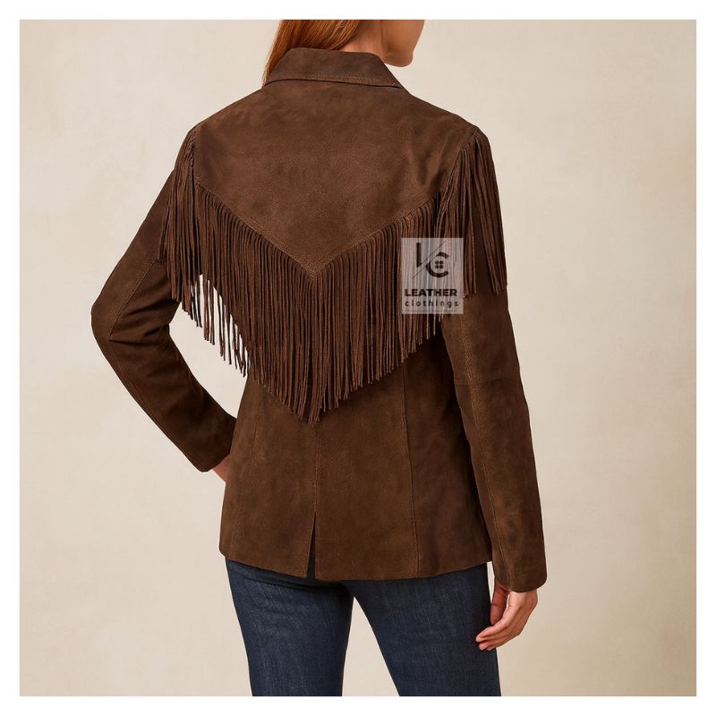Brown Cowgirl Jacket For Womens with Bold Fringe Accents | WJ33