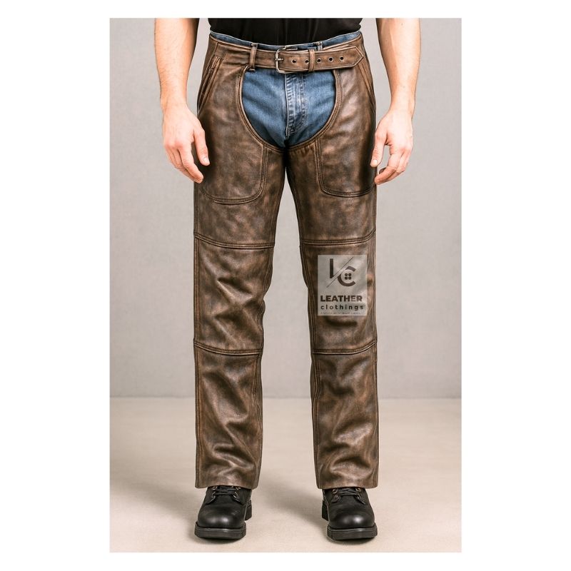 Add classic Western style to your outfit with our Brown Waxed Leather Chaps for Men. These chaps combine cowboy tradition with durable biker craftsmanship. They are made from high-quality cowhide leather, ensuring durability, flexibility, and comfort whether you’re riding a horse or a motorcycle. The Western design features detailed stitching and a smooth finish that showcases the authentic cowboy spirit. With an adjustable waist belt and a soft inner lining, these chaps offer a secure fit and lasting comfort. Handcrafted for men who value style, strength, and timeless Western heritage.