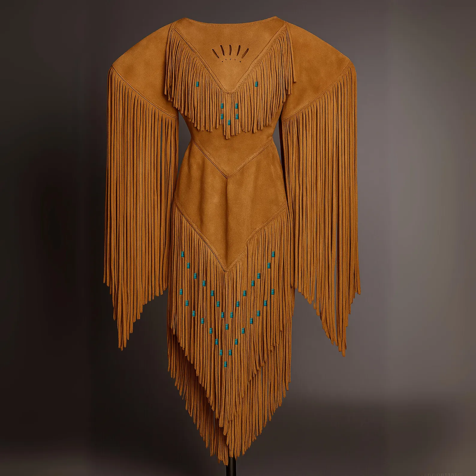 Native American Fringe Dress – Powwow Regalia with Turquoise Beads