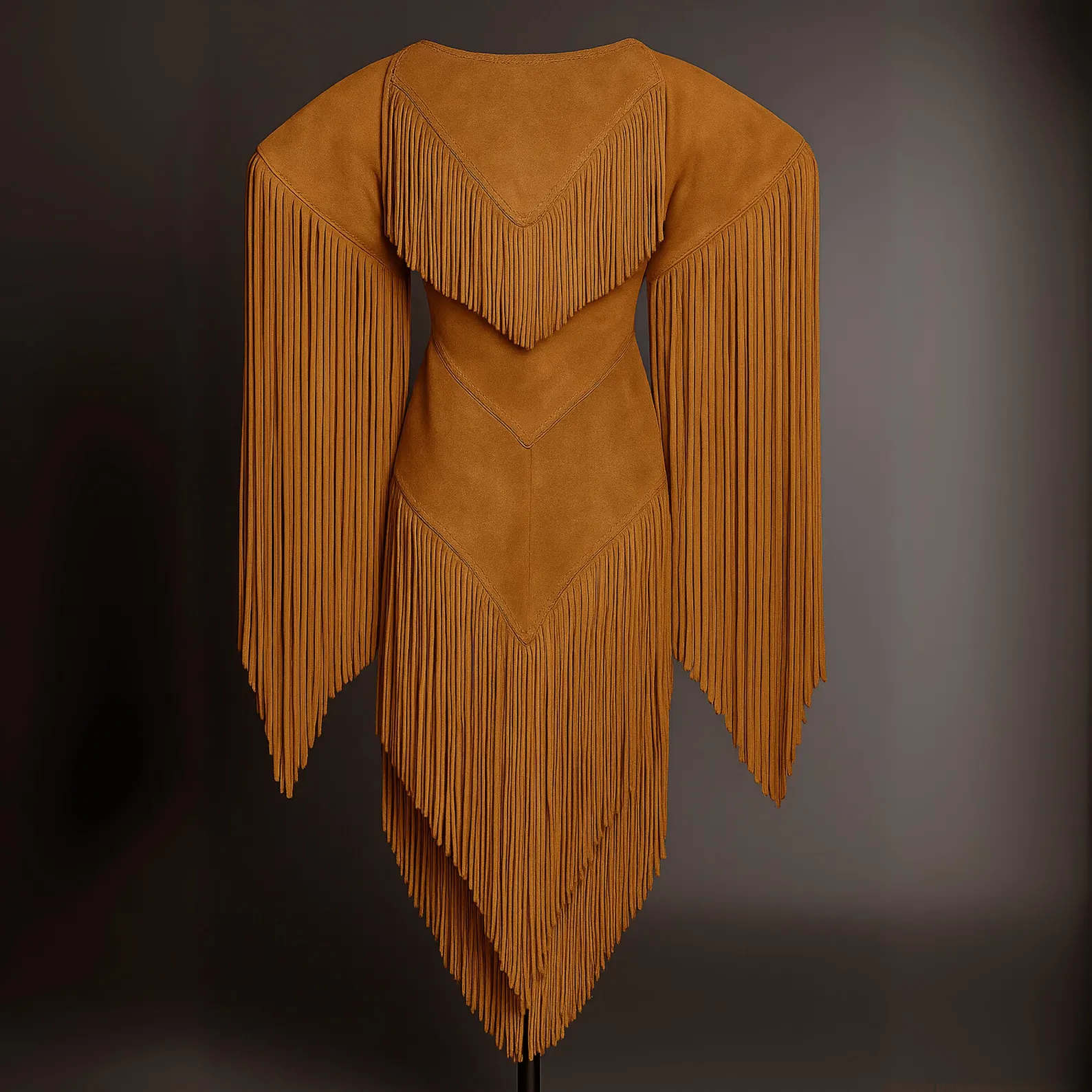 Design: Long fringe on the sleeves and hem for a bold western look.