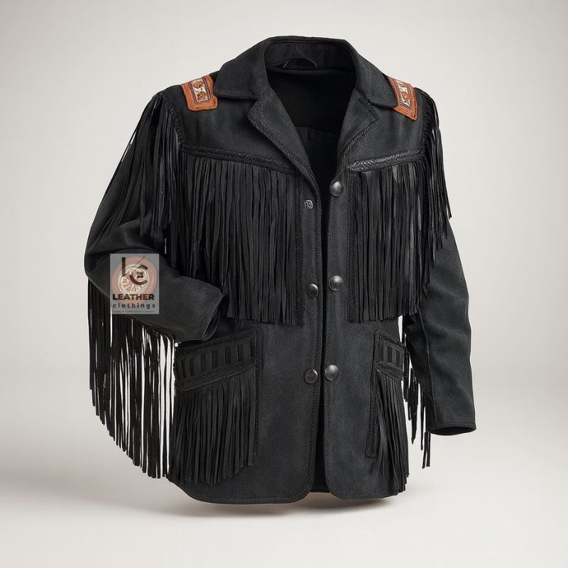 Channel your inner cowboy with our stylish Cowboy Jacket with Fringe. This classic piece is a must-have for anyone looking to add a touch of Western flair to their wardrobe. Crafted from premium leather, the jacket boasts intricate fringe detailing that adds a bohemian edge. Whether you’re heading to a music festival, a night out, or simply running errands, this versatile jacket will elevate your look. With its black color and customizable size options, there’s a perfect fit for everyone. Experience the ultimate blend of comfort and style with our Cowboy Jacket with Fringe.