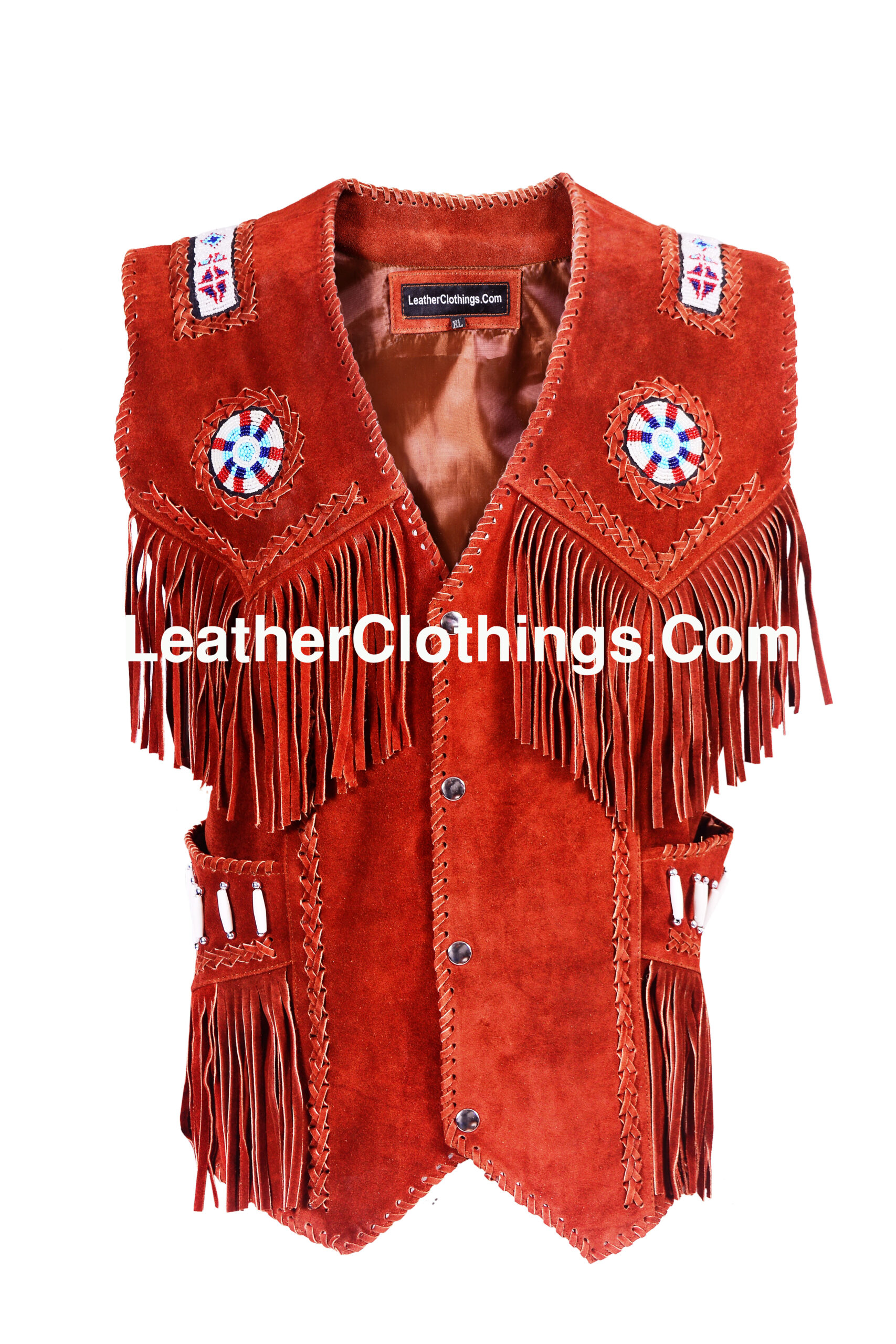 Embrace your inner gunslinger with the bold SUV4 Red Suede Cowboy Western Vest. Crafted from luxurious red suede, this vest exudes Western heritage with a touch of drama thanks to its flowing fringes. Personalize your look with intricate beadwork and stand out from the crowd in true Wild West style with SUV4.