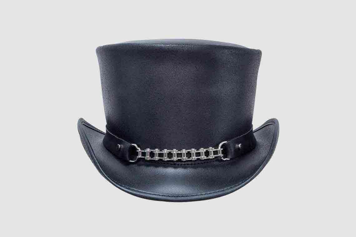 El Dorado Black Leather Top Hat Roller Chain Band-Wide Brim
