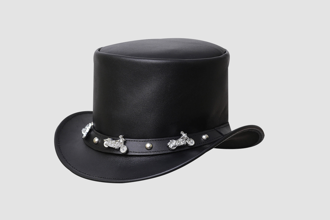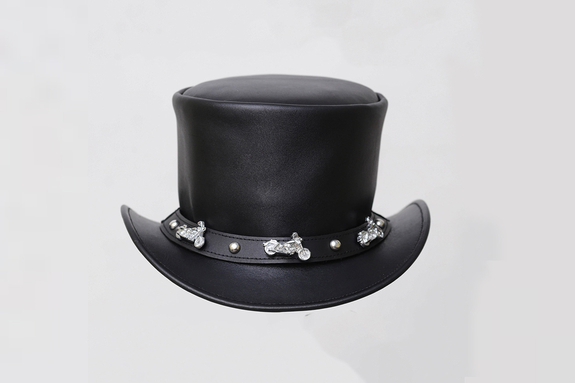 El Dorado Black Leather Top Hat With Motorcycle Band | THMB1
