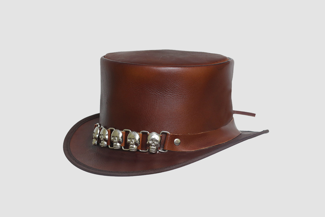 Upgrade your style with our El Dorado Brown Leather Top Hat Five Skulls Band, complete with a fantastic Five Skulls Band! We take pride in crafting each hat with care, ensuring it fits you snugly and securely while looking fabulous. Plus, our speedy and reliable shipping means you won’t have to wait long to show off your new look!