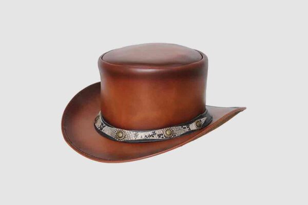 El Dorado Brown Leather Top Hat with Crocodile Skin Texture Band