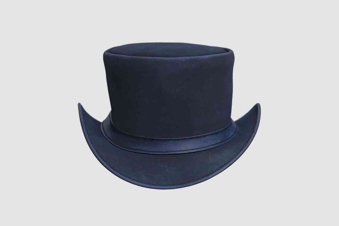 blue leather top hat, waxed leather hat, El Dorado top hat, steampunk hat, mens leather hat, blue cowboy hat, vintage leather hat, handmade leather hat, fashion leather hat, luxury leather hat