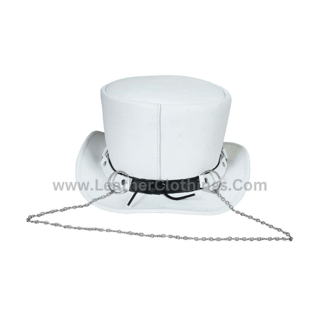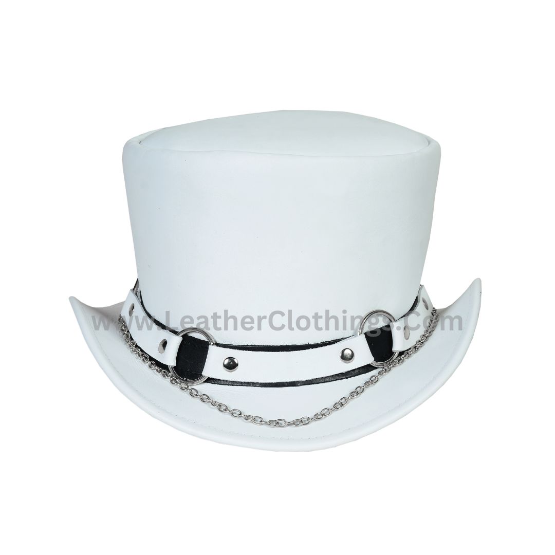 Get ready to promote your style with the El Dorado White Leather Top Hat SR2 Band! Made from premium white leather and featuring a striking SR2 band, this hat brings timeless grace and unique charm to any outfit. Plus, you can customize the fit with its shapeable brim. Perfect for formal events, steampunk gatherings, or simply adding a unique flair to your everyday look. Expect superior craftsmanship, fast shipping, and the perfect size for everyone. Order now, and let’s make a memorable impression together!