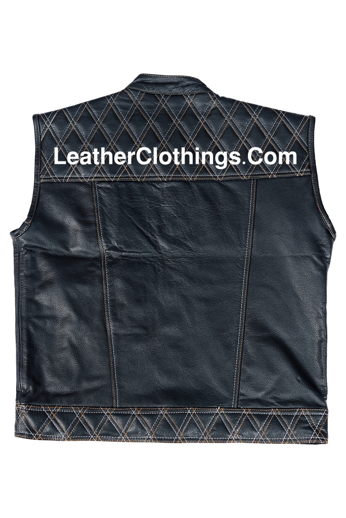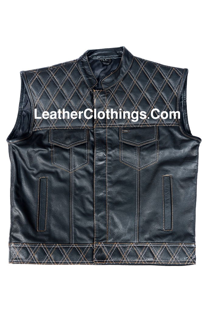 Hunt Club Biker Leather Vest | Dimond Quilted Vest