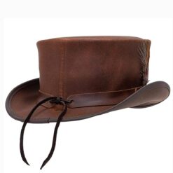 Marlow Brown Leather Top Hat LT Band With Feathers | Steampunk Hat