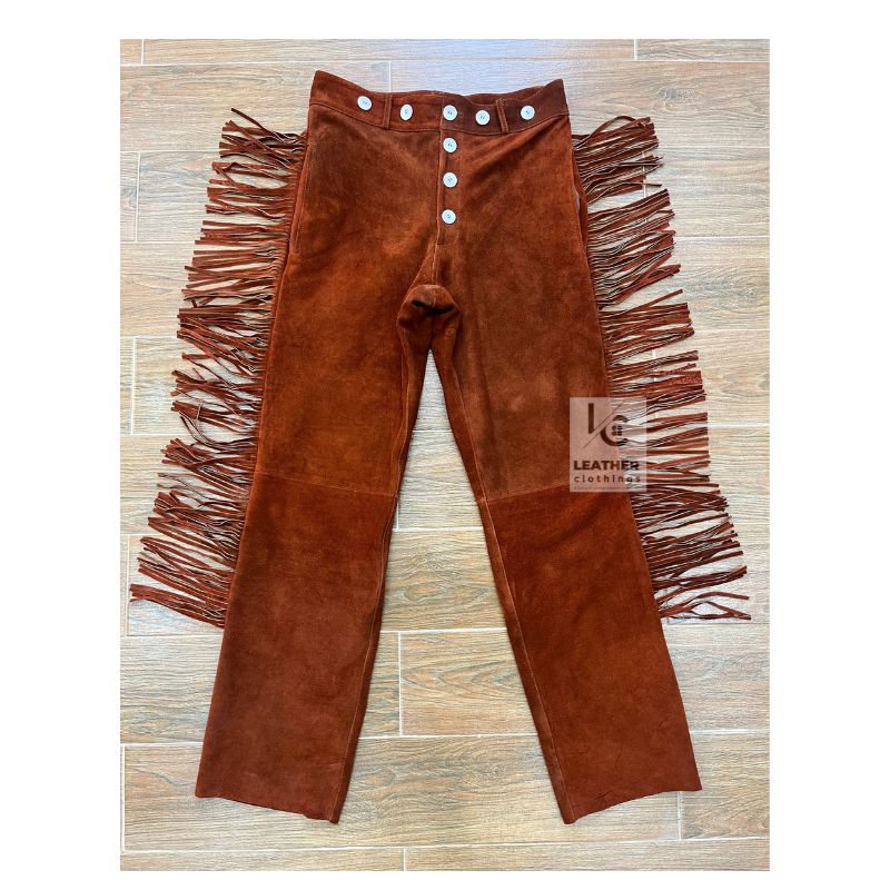Men Reddish Brown Western Pant with fringes – Cowboy Chic – MSP13B