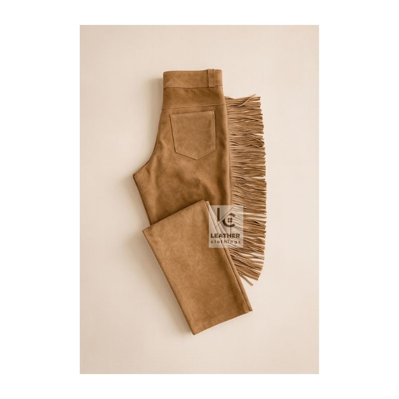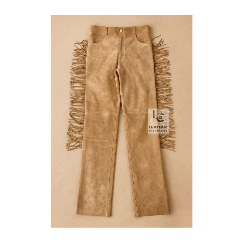 Check out our men western brown suede fringes pant! They’re a perfect blend of rugged and refined, making them a must-have for any wardrobe. The premium suede feels fantastic against your skin—durable yet super comfy. Plus, the fun fringe detailing adds just the right amount of Western charm. With a relaxed fit, you’ll have all the comfort and freedom to move you need. Whether out exploring nature or enjoying a country music concert, these pants have covered you in style and comfort!