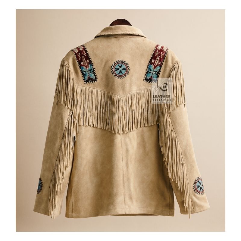 Step into vintage style with this Men’s 1980s Rockabilly Beige Suede Fringe Jacket, crafted from premium cowhide suede leather for a soft and luxurious feel. Designed with flowing fringes and detailed bead accents, this jacket captures the bold spirit of classic Western and rockabilly fashion. The comfortable polyester lining and regular fit make it perfect for everyday wear, festivals, concerts, or motorcycle rides. Available in sizes 2XS to 5XL, this timeless suede jacket blends rugged charm with standout retro style.