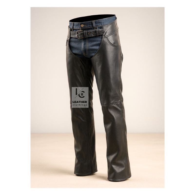 Men’s Black Leather Chaps – Men’s Motorcycle Chaps