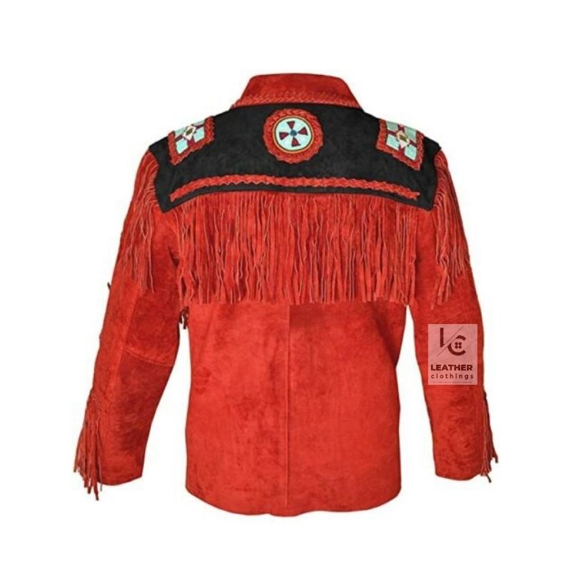 Browse our unique Men’s Fringe Leather Jacket with beads and bones, a statement piece for the modern trendsetter. The jacket is made from high-quality leather and adorned with intricately designed beads and bones, giving it a bold style. The fringe details add movement, making it a standout choice for those who want to make a statement with their fashion. Whether you’re heading to a concert or festival or just want to stand out from the crowd, this jacket is sure to turn heads. Embrace your individuality and upgrade your wardrobe with this edgy and eye-catching leather jacket!
