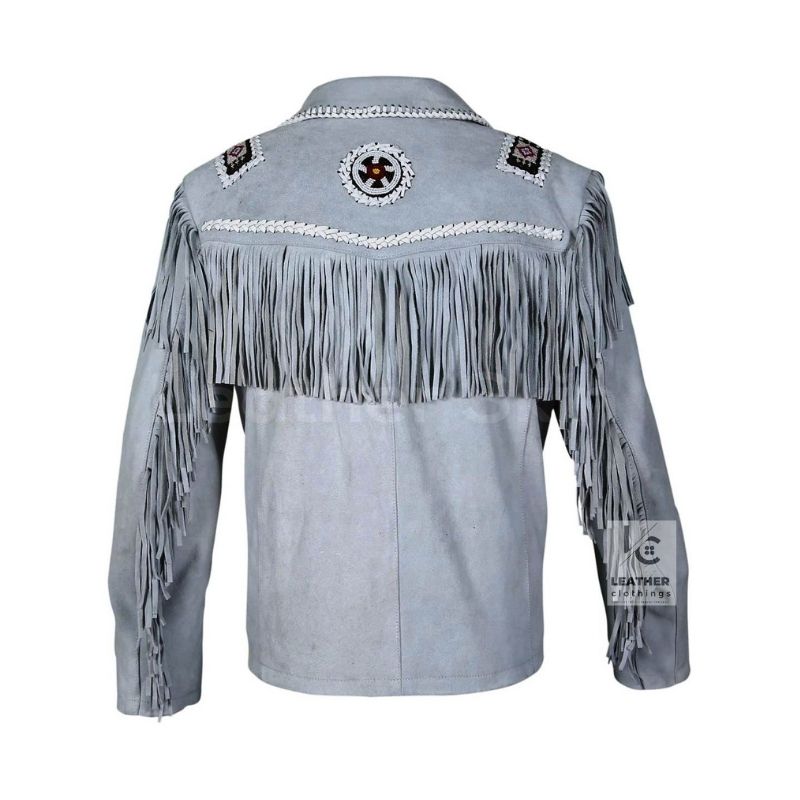 Men’s Gray Suede Western Jacket Fringed And Beaded | MSWJ103G