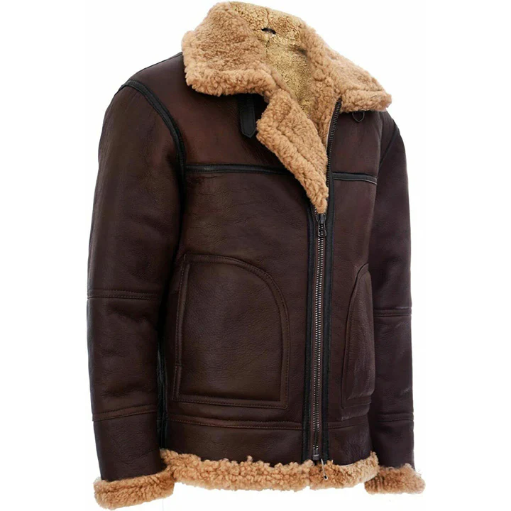 The Mens RAF Shearling Aviator Jacket is a fantastic choice for anyone looking to stay warm and stylish! Made from genuine sheepskin leather and lined with cosy shearling, this bomber jacket is not just about looks—it’s super comfy, too! With its classic RAF design, wide collar, and sturdy hardware, it brings a strong, masculine vibe that you’ll love. Plus, the polished finish makes it perfect for everything from casual hangouts to dressier events. It’s a wonderful blend of traditional charm and timeless fashion! You’ll definitely turn heads in this jacket!