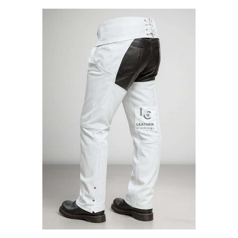 Mens White Leather Motorcycle Chaps for Sale | MLC11