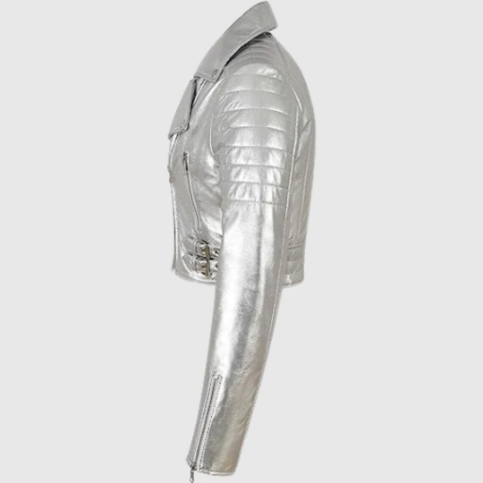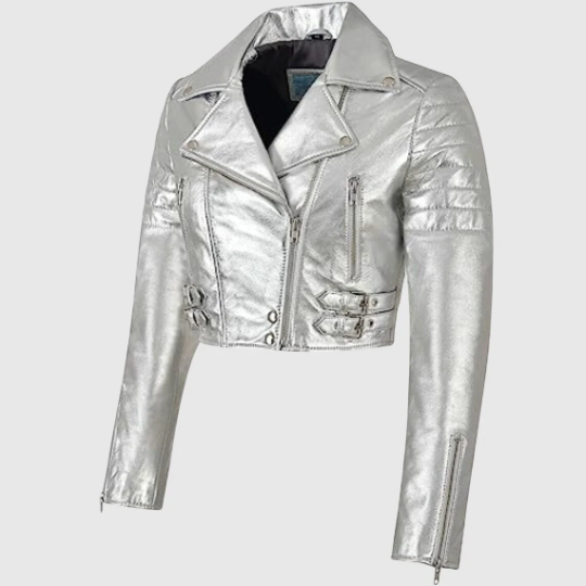 Check out this incredible Metallic Silver Leather Short Jacket! It’s super comfy and stylish, and it’s a must-have for anyone who loves fashion. This jacket is made from high-quality leather, so it feels really soft and light. You can move around quickly because of the cropped design and the breathable material, which keeps you comfortable in any weather. Whether you’re going out for a fun night or just adding a little flair to your everyday look, this jacket is perfect for anyone who wants both style and comfort.