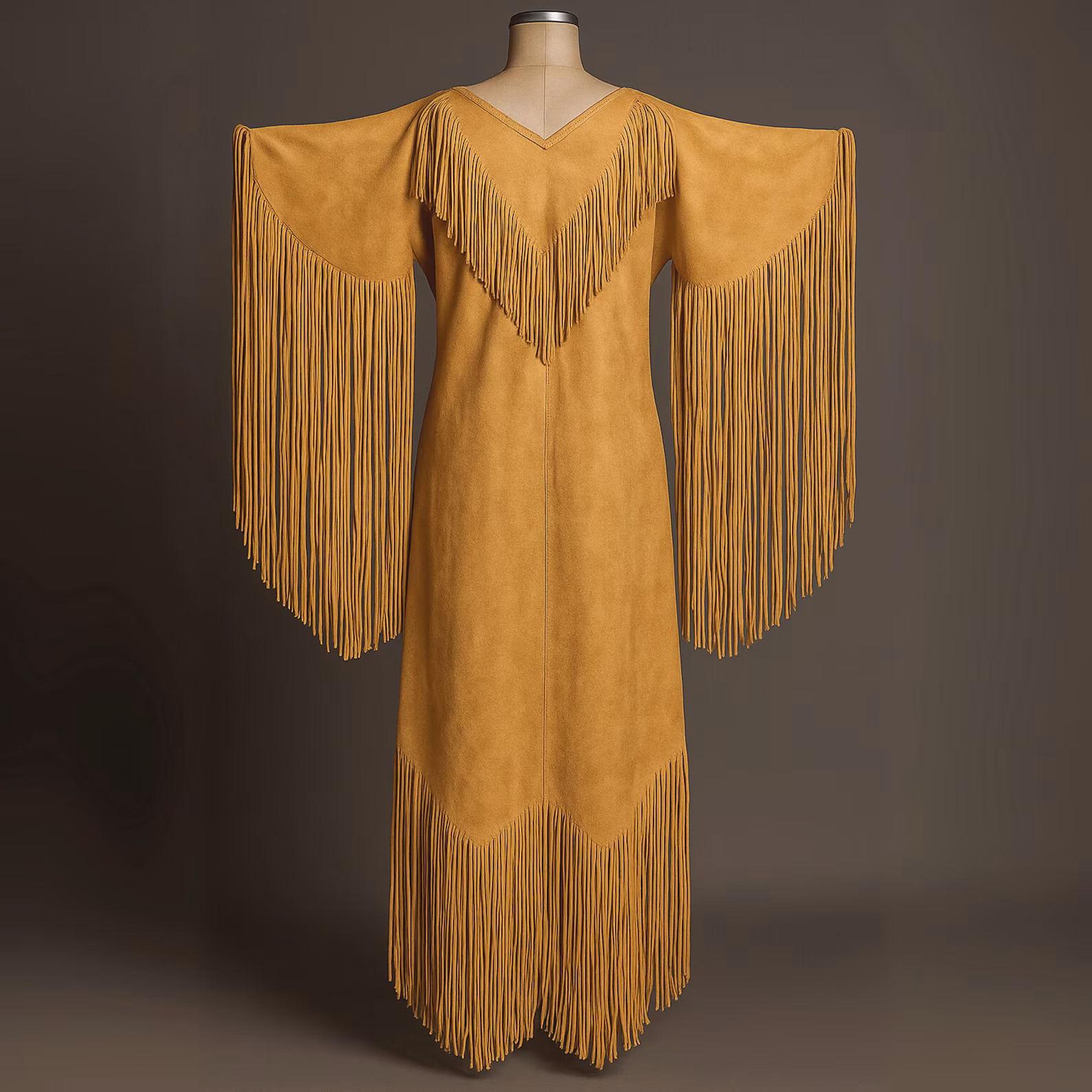 Shop the Native American Suede Fringe Dress at affordable prices. This traditional dress is made with high-quality Premium suede. It has strong stitching and expert craftsmanship for durability and a clean finish. The dress is available in all sizes and fits true to size, ensuring comfort and a flattering look. Enjoy free worldwide shipping and customizable options, including fringe length, dress cut, colour tones, and exact measurements. This handcrafted, limited-edition fringe dress is perfect for women seeking quality materials, precise sizing, and a personalized design.