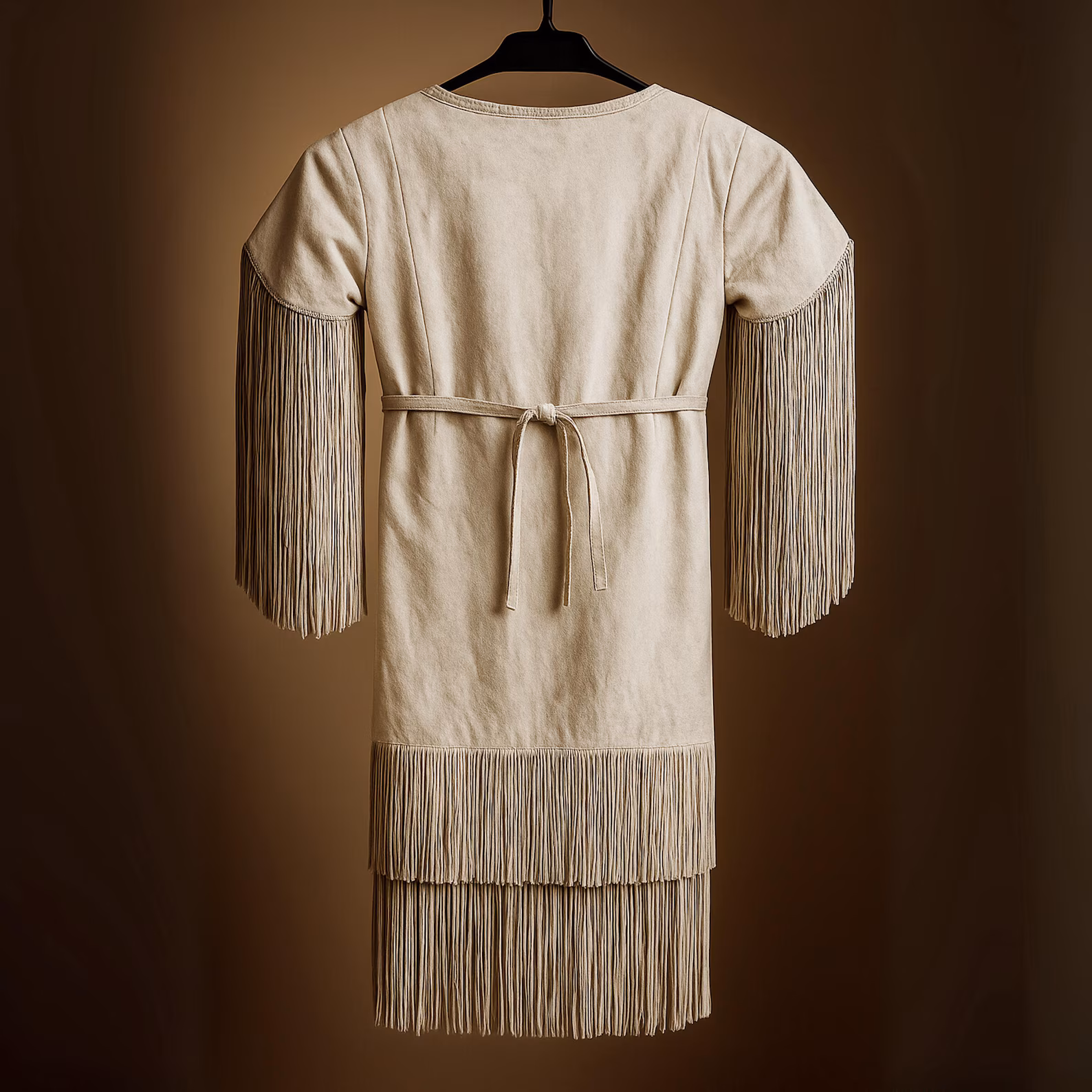 Shop for the Native American Women’s Regalia Dress at affordable prices. This dress is made from high-quality suede, ensuring durability with expert stitching. It is available in all sizes and fits true to size for a comfortable and flattering fit. Enjoy shipping worldwide and customize options for fringe length, bead accents, dress cut, color, and measurements. This handcrafted, limited edition regalia dress is perfect for women who want top-quality materials, precise sizing, and personalized details.