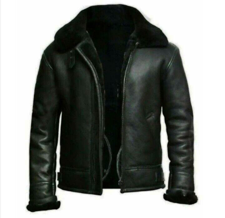 RAF B3 Bomber Aviator Jacket Black Sheepskin Pilot Flight Coat