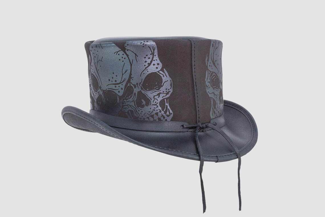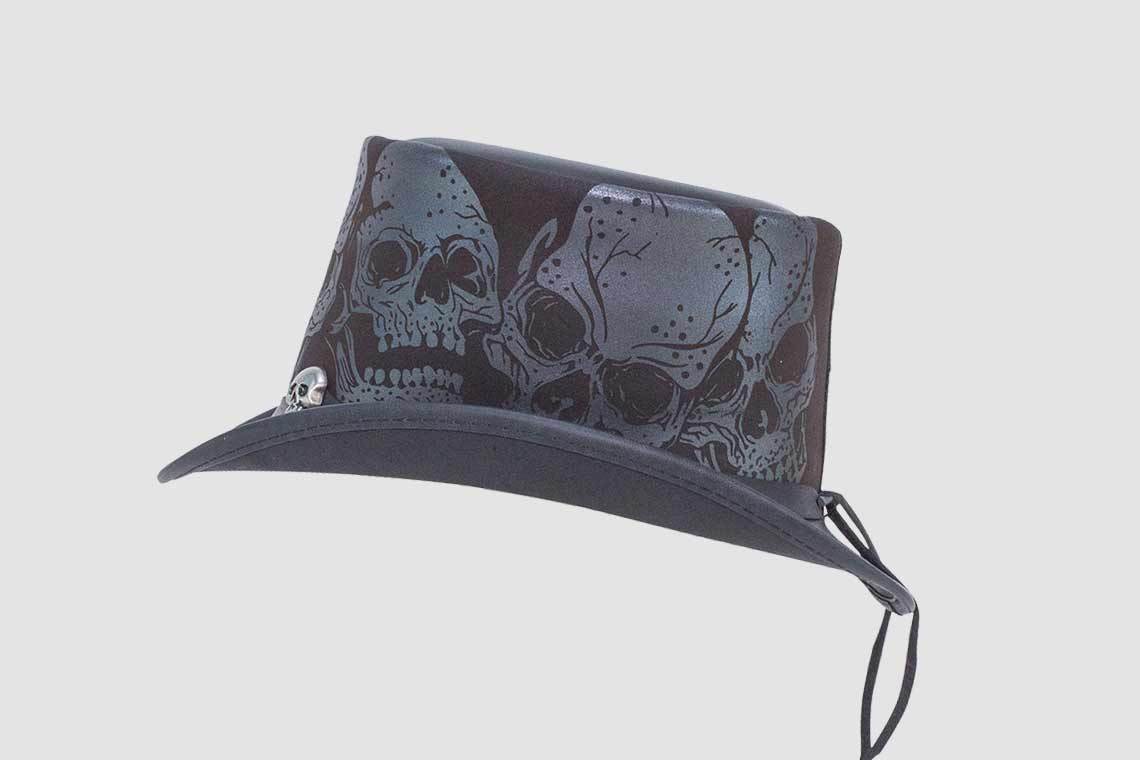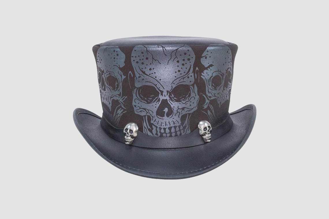 Silver Skulls Leather Top Hat
