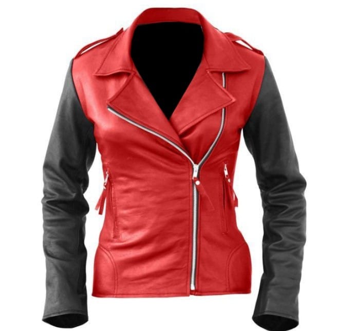 Trendy Genuine Sheep Leather Fashion Jacket In Red And Black Color