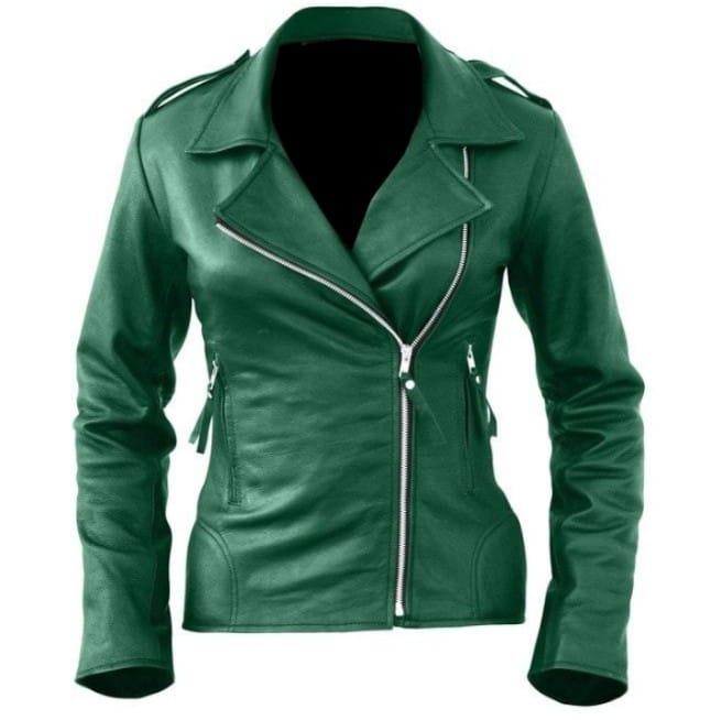 Womens Trendy Green Genuine Sheep Leather Jacket