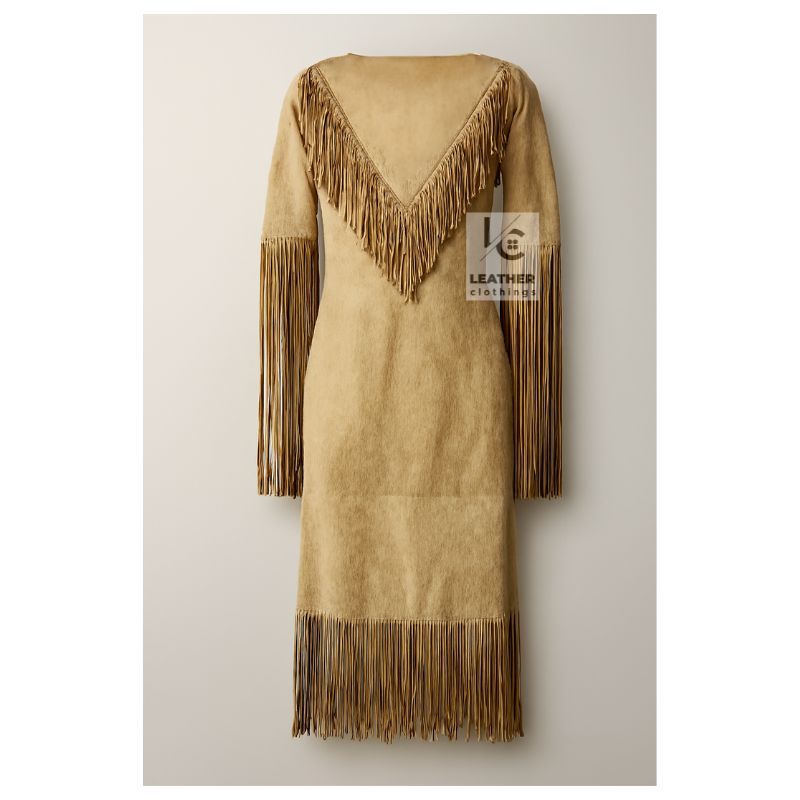 Striking V-Shaped Fringe Detailing on the front for a bold Native American touch.