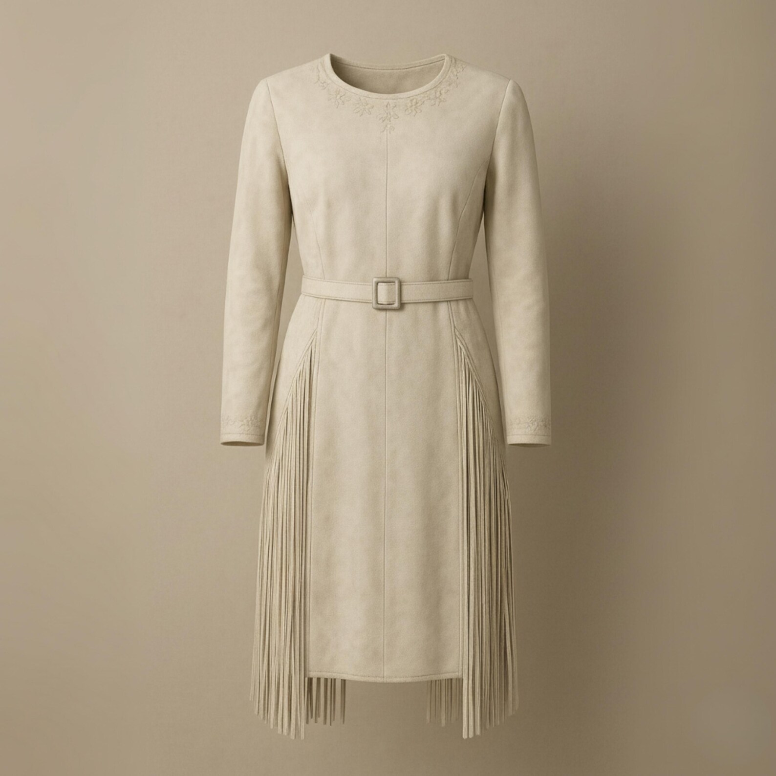 The Western Suede Fringe Midi Dress is a stylish outfit that combines modern Western and boho fashion. This dress has a flattering midi length and features flowing fringe that adds movement and catches the eye. The soft suede material makes it comfortable to wear while keeping a stylish shape. It is perfect for rodeo events, festivals, and making a fashion statement. This boho fringe midi dress offers a confident and trendy look with a touch of timeless Western charm.