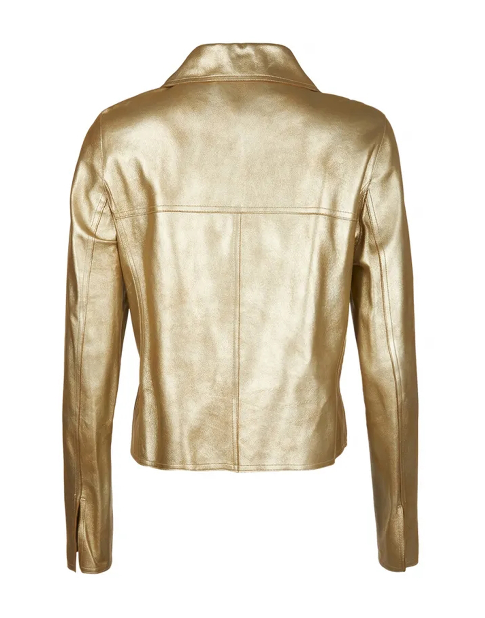 Shine in style with the Metallic Gold Leather Fashion Jacket