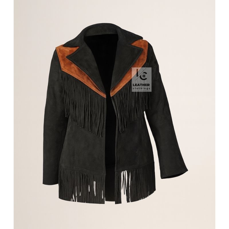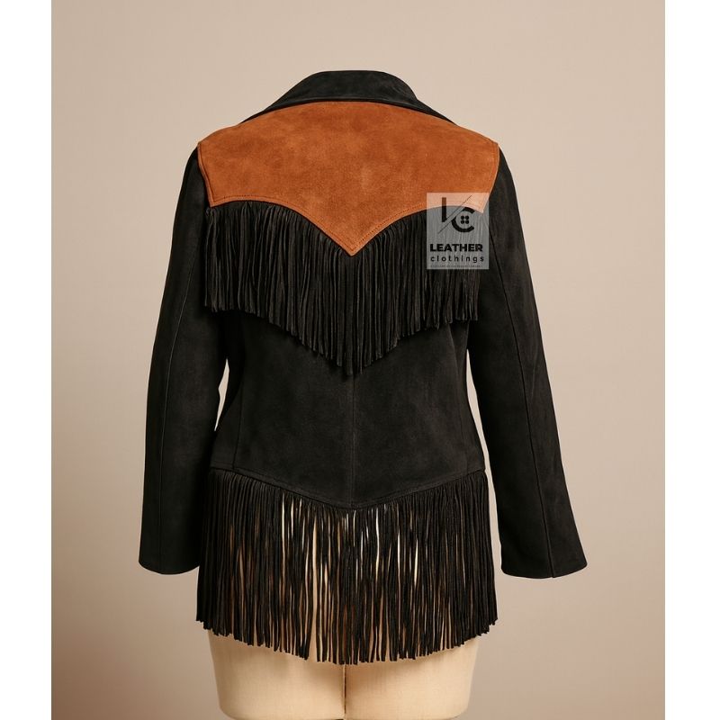 Women Western Cowgirl Black Brown Suede Jacket