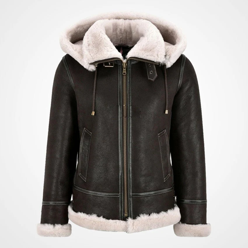 Womens B3 Sheepskin Bomber Jacket with Detachable Hood