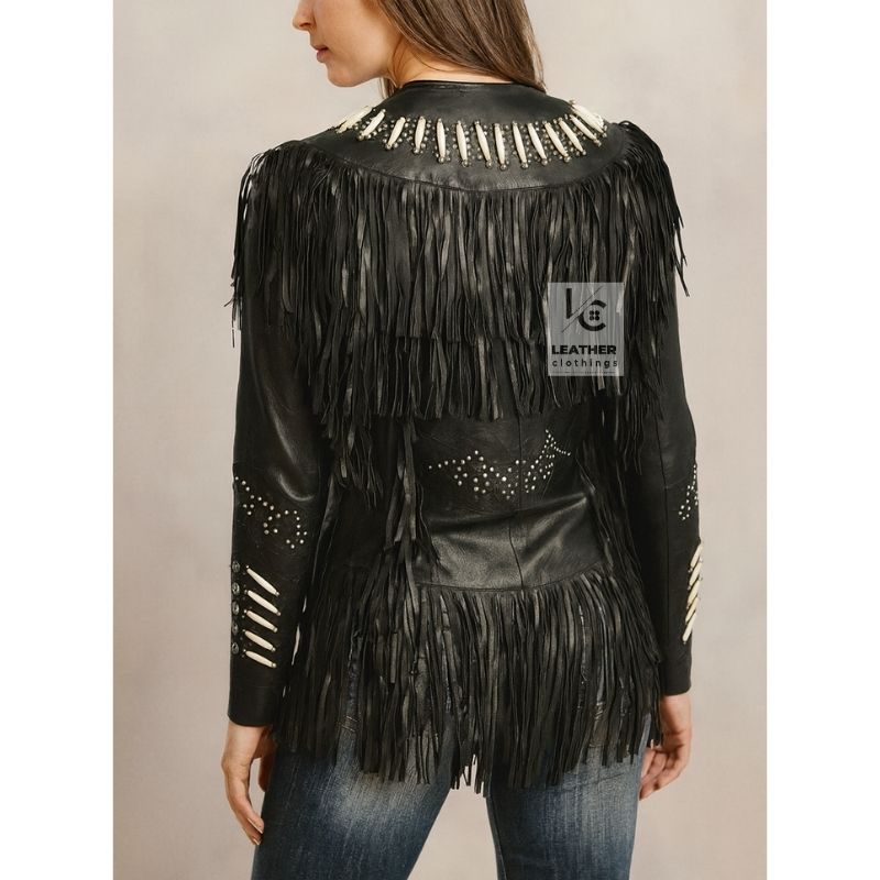 Women’s Black Leather Cowgirl Western Jacket | WWLJ1