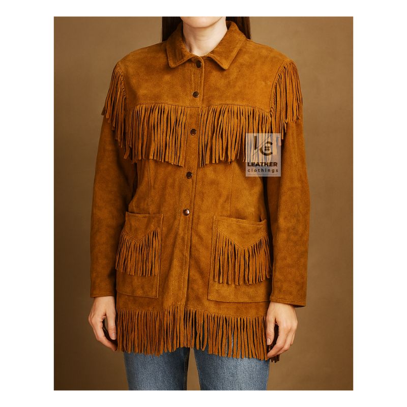 Women’s Western Cowgirl Brown Suede Jacket With Fringes