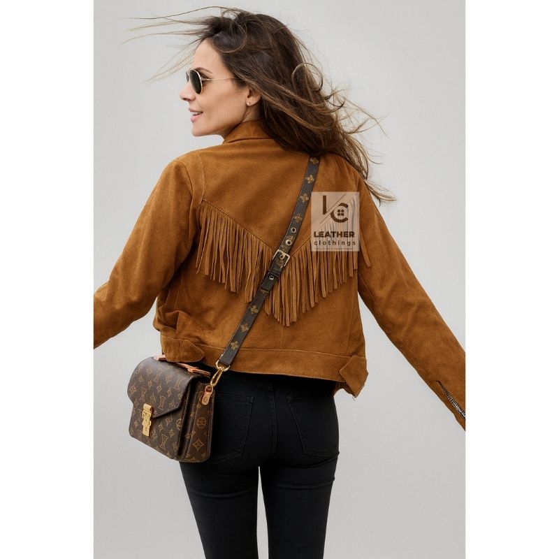 Check out the Women’s Western Cowgirl Brown Suede Short Jacket With Fringes. It’s all about timeless design and high quality. This jacket is handcrafted with the finest suede and comes in custom sizes for the perfect fit. The fabulous fringes give it that bold Western vibe, and it’s super soft and comfy too. Whether you’re dressing up for an event or want to add some flair to your everyday look, this jacket has got you covered. Order yours today for the best shipping options, and get ready to rock that true Western style!
